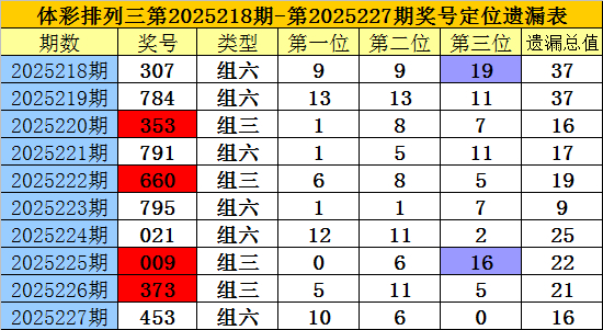开奖归来:成列三第2025227期奖号为:453,诸位号码遗漏值永诀为10、6、0,遗漏总值为16。