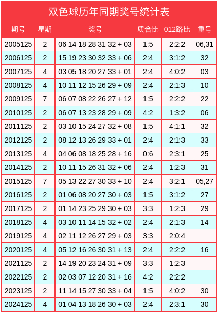 质合比分析:积年同时的奖号质合比为40:80,举座来看合数发达较为强势,旧年同时的奖号质合比为2:4,本期瞻望合数发达较为强势。