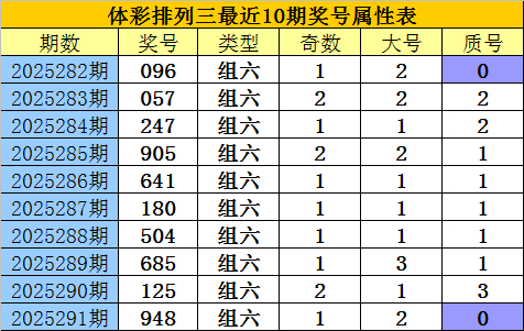 开奖总结:成列三上期开奖号码为:948,大小比为2:1,奇偶比为1:2,质合比为0:3。
