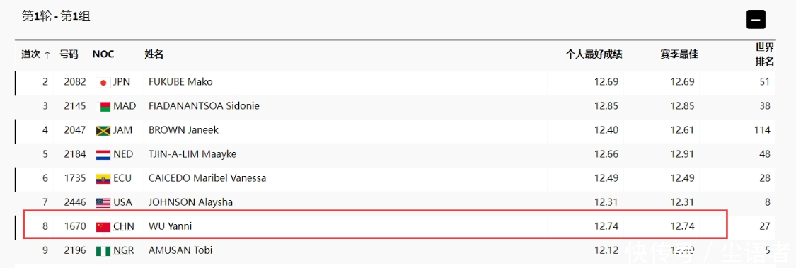 点击输入图片描写(最多30字)期待已久的奥运首秀,吴艳妮的进展会若何,这是这个奥运比赛日国内不雅众最为顺心的比赛之一。在这个比赛日,女子100米栏第一轮比赛定期举行。中国选手吴艳妮在第一组第8说念出战,在这个小组里,不错说是妙手云集。吴艳妮跑得最快的收货12秒74,在这个小组内部也只可排到第七。这个小组中有日本选手福部真子,上个月她刚刚跑出12秒69;有全国记载(12秒12)保捏者、尼日利亚的阿姆桑;有本年跑出12秒31好意思国名将阿莱莎-约翰逊。