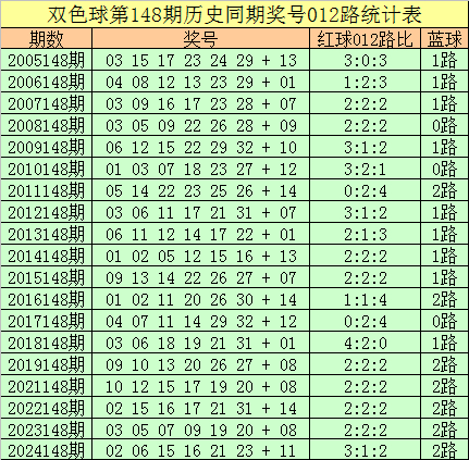 福彩双色球第2025148期历史同时王守礼012路奖号遗漏分析:
