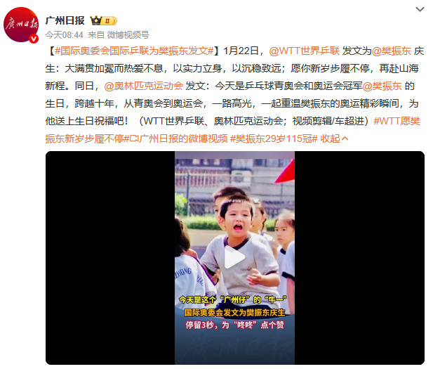 1月22日零点整,吴敬平西席准时卡点为樊振东奉上生辰道贺,一会儿激励大量网友共识。